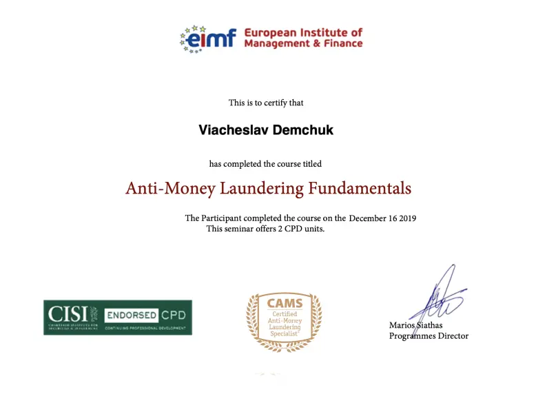 AML officers help resolve difficult situations and keep you safe from fines and blockages. Professional specialists will represent your interests up to the court, if necessary.